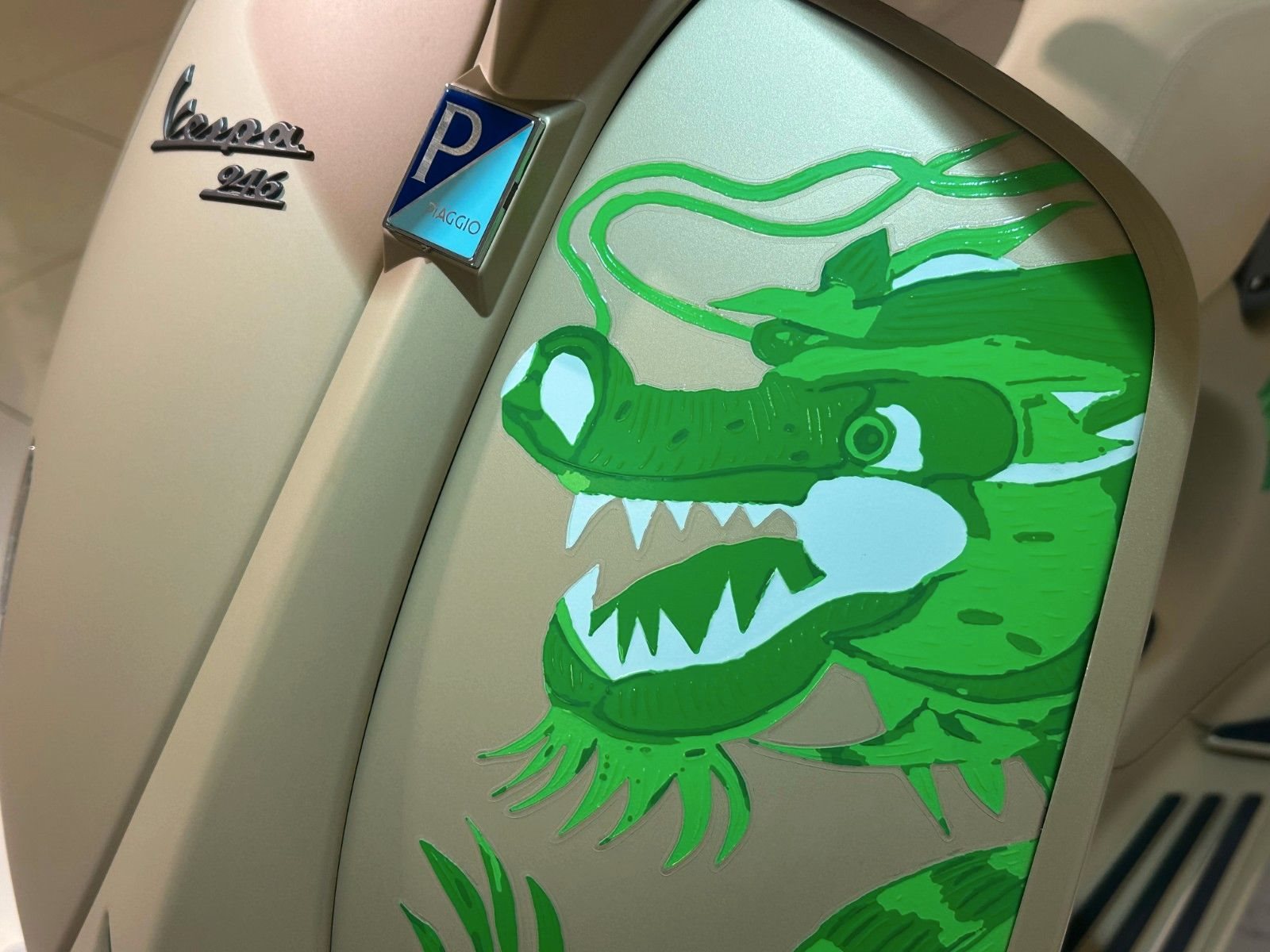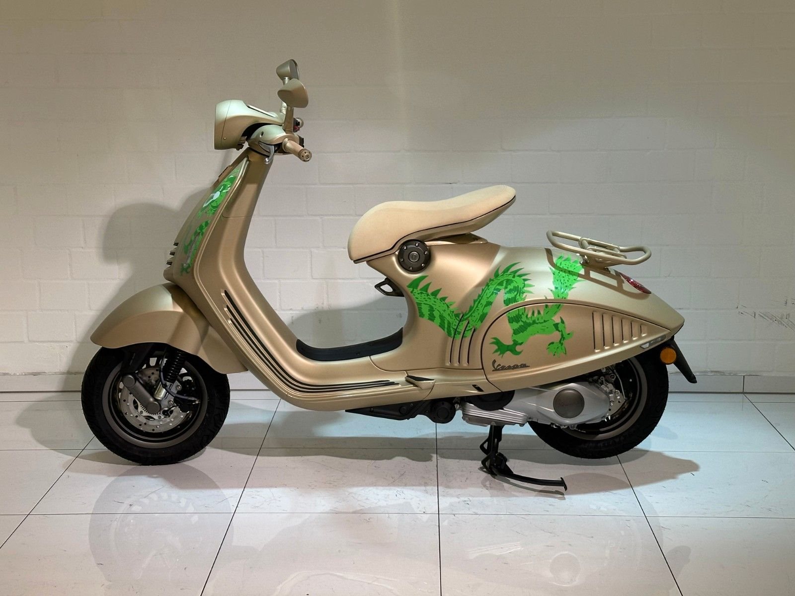 Die Vespa 946 Dragon ist eine Hommage an das majestätische, mächtige Tier, nach dem sie benannt ist, und an den Mondkalender. Sie ist in einer limitierten Auflage von 1888 nummerierten Vespa erhältlich und dazu bestimmt, ein Sammlerstück zu werden. Jede einzelne Dragon wird in Italien von Hand gefertigt und interpretiert die ikonischsten Elemente der ersten Vespa-Prototypen in einer zeitgemäßen Form neu, die den Archetyp der Vespa der Zukunft darstellt.