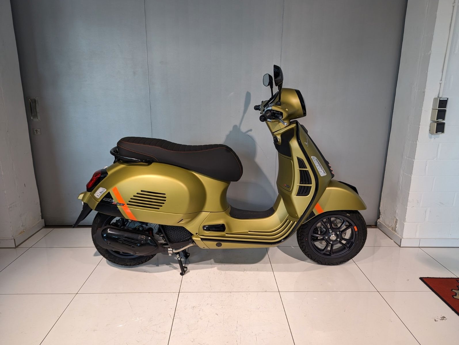 Die Vespa GTS SuperSport ist in einer großzügigen Auswahl an glänzenden und matten Farbschemata erhältlich, mit Einsätzen in Carbon-Optik und glänzenden schwarzen Details, die den perfekten Akzent für die von Ihnen gewählte Lackierung bilden. Die Vespa GTS SuperSport ist mit vielen zusätzlichen Details und sportlichen Grafiken ausgestattet, während der bequeme Sitz mit hochwertigem Material und Kontrastnähten gepolstert ist.