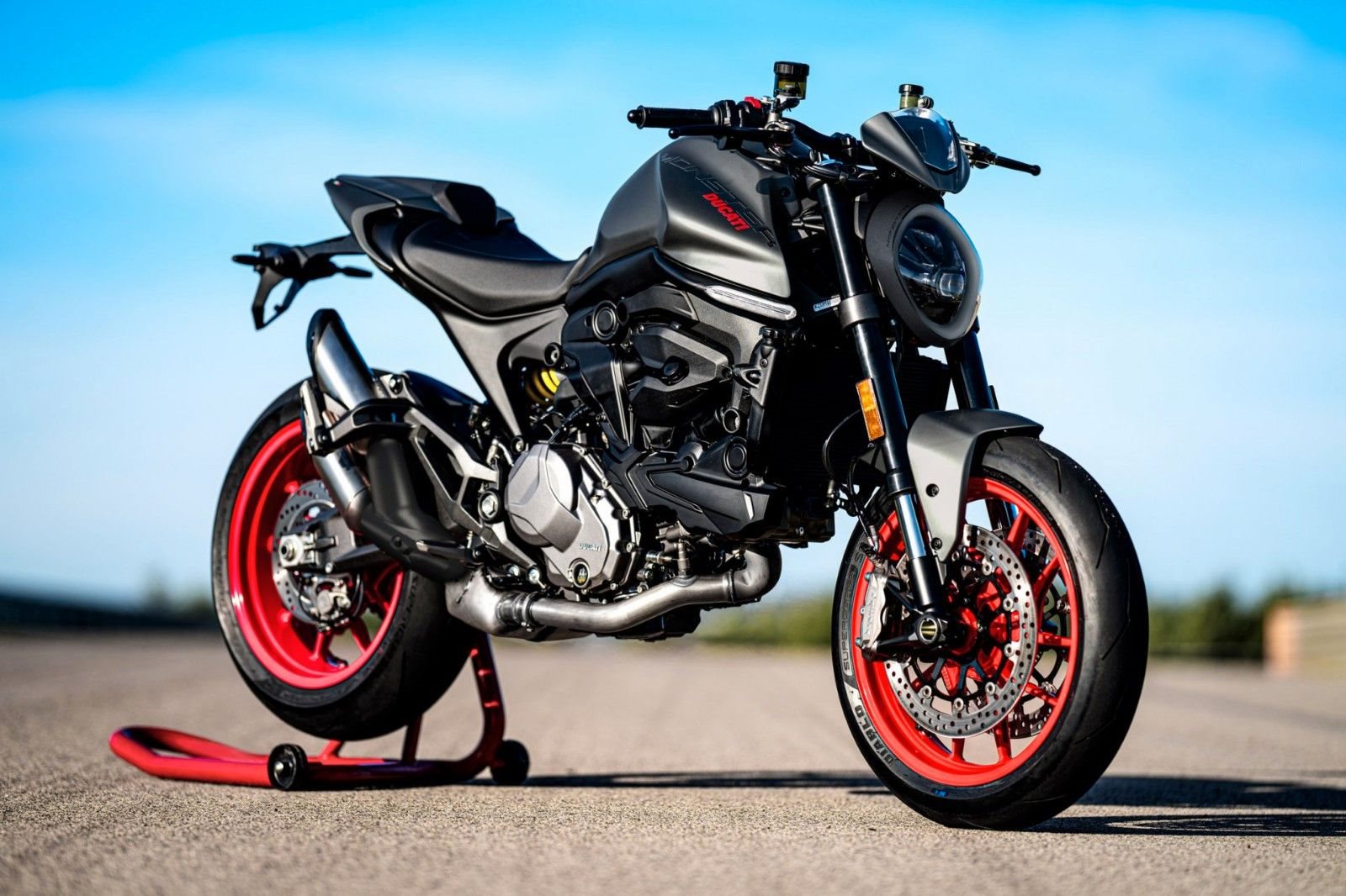Riding Modes, Power Modes, Kurven-ABS, Ducati Traction Control, Ducati Wheelie Control, Day Time Running Light, Ducati Quick Shift, Ducati Power Launch, 4.3" TFT-Farbdisplay, Voll-LED Scheinwerfer und Beleuchtungssystem, Dynamische Blinker, USB-Steckdose