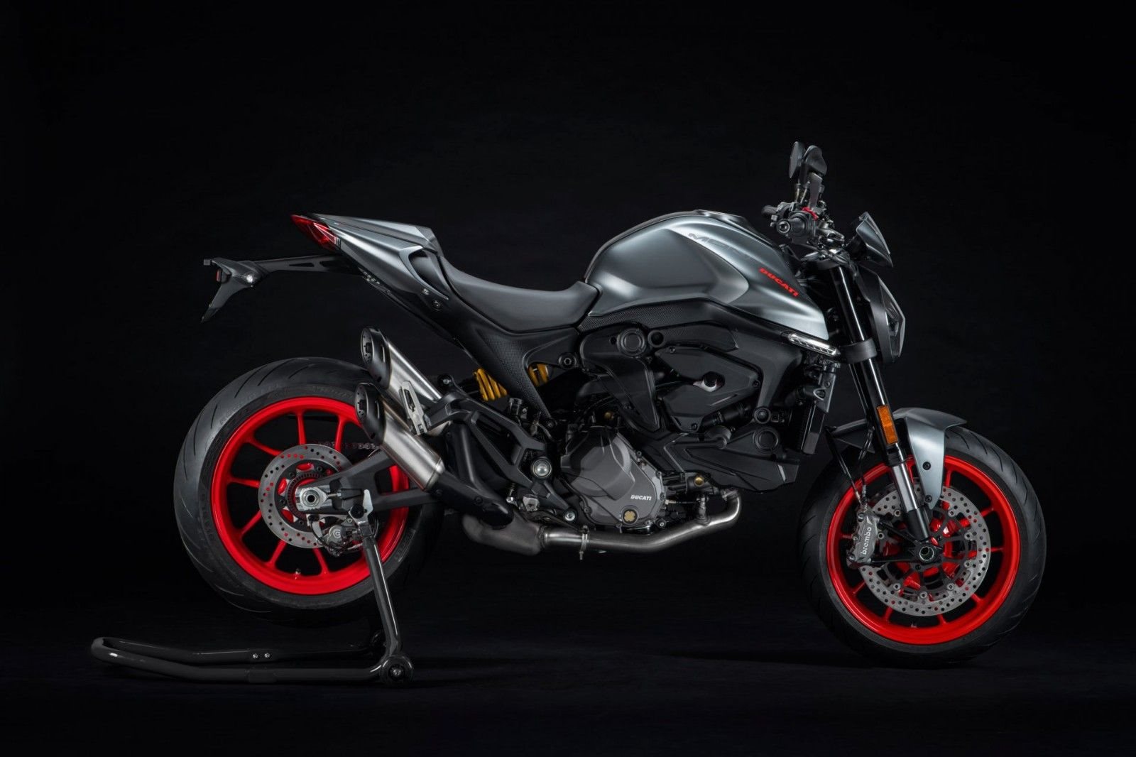 Die Essenz von Ducati in einem modernen und zeitgemäßen Motorrad: Nicht mehr und nicht weniger ist die neue Monster in ihrer bislang kompaktesten und leichtesten Form. Die neue Monster greift das ursprüngliche Konzept von 1993 wieder auf. Mit dem neuen, vom Superbike Panigale V4 abgeleiteten Rahmen aus Aluminium sinkt das Gewicht auf nur 166 kg (trocken). Damit ist sie 18 kg leichter als die Monster 821.Das Design besticht durch einfache, klare Linien. Der kompakte Look beschränkt sich auf das, was unverzichtbar ist: Motor, Sitz, Tank und Lenker. Alles, was man braucht, um Spaß zu haben.