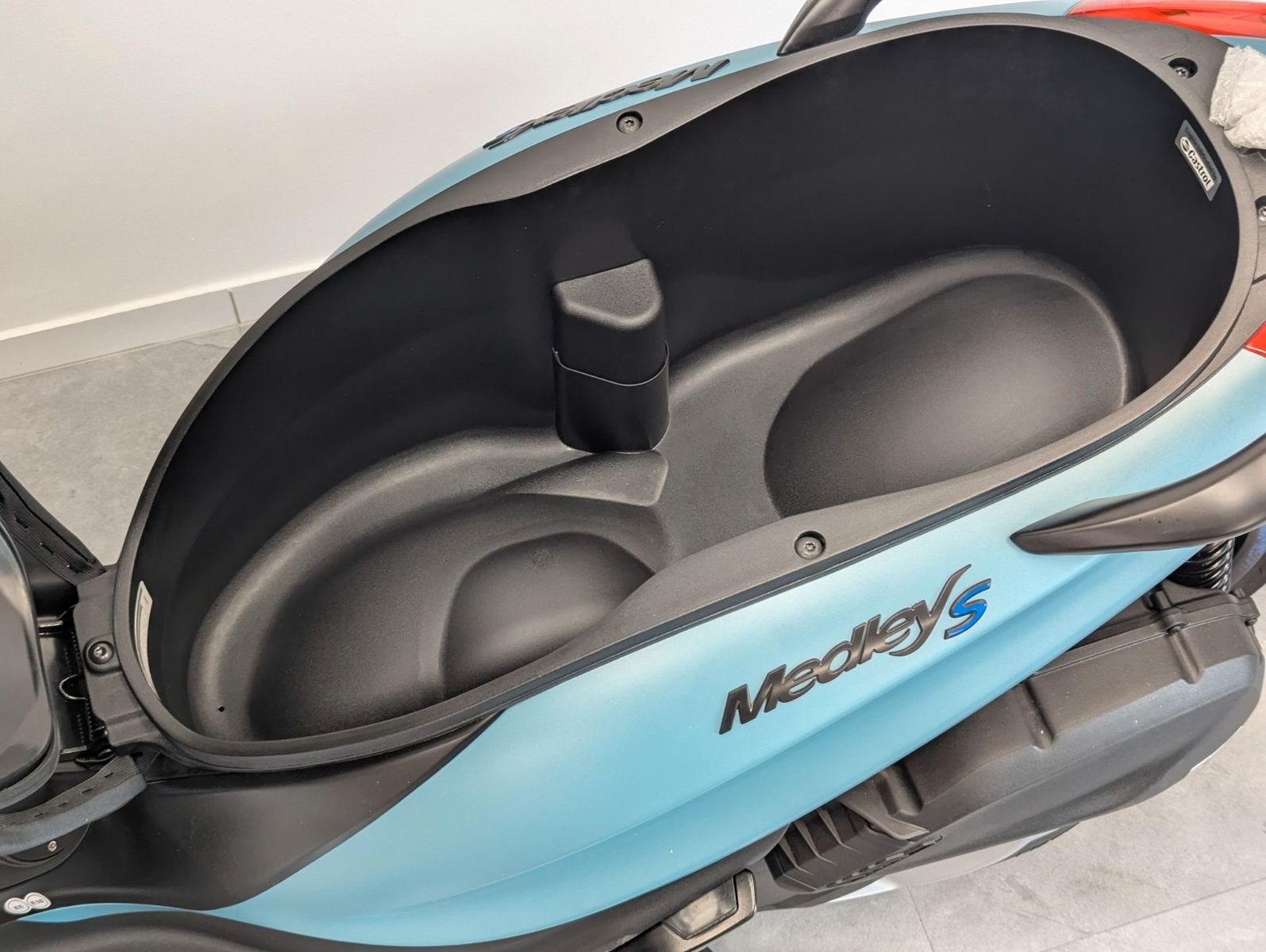 Flink, agil und wendig präsentiert sich der Piaggio Medley S 125 in sportlich-elegantem Look. Volle 11 kW (15 PS) garantieren Fahrspaß vom Feinsten. Perfekt gestylt von der Front bis zum Heck, zeigt sich der Medley S 125 mit Full-LED-Scheinwerfer und LCD-Multifunktions-Display technisch modern und funktionell.