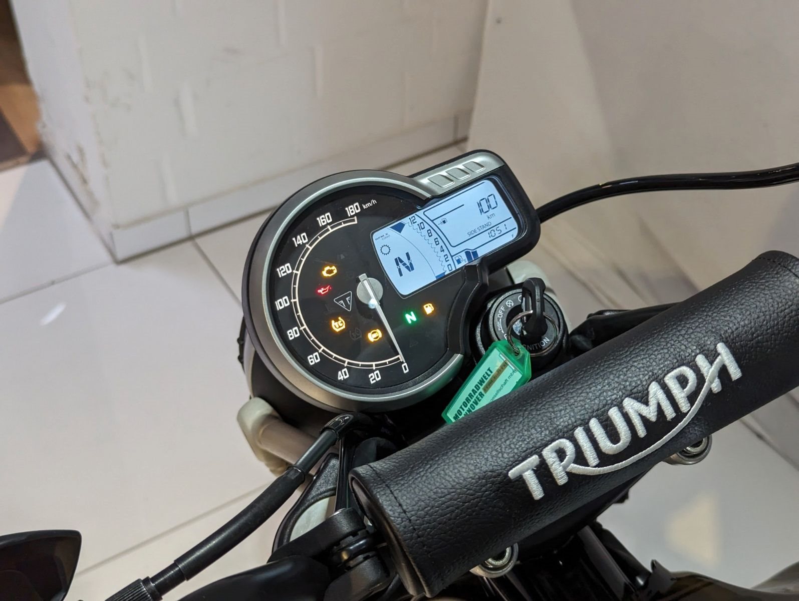 Die Scrambler 400 X ist ein erfrischender Neuzugang in der Scrambler-Familie von Triumph und eröffnet einer ganz neuen Generation das Fahrerlebnis der modernen Klassiker von Triumph.Mit ihrer zeitlosen Scrambler-Silhouette und der unverwechselbaren, gerippten Sitzbank bietet die Scrambler 400 X den unverkennbaren Stil einer Triumph, kombiniert mit hochwertiger Verarbeitung und erstklassiger Ausstattung voller moderner Fahrtechnologie.Der in Hinckley konstruierte Einzylindermotor erzeugt den für Triumph typischen charaktervollen und reaktionsschnellen Antrieb mit klassenbester Leistung und Drehmoment.
