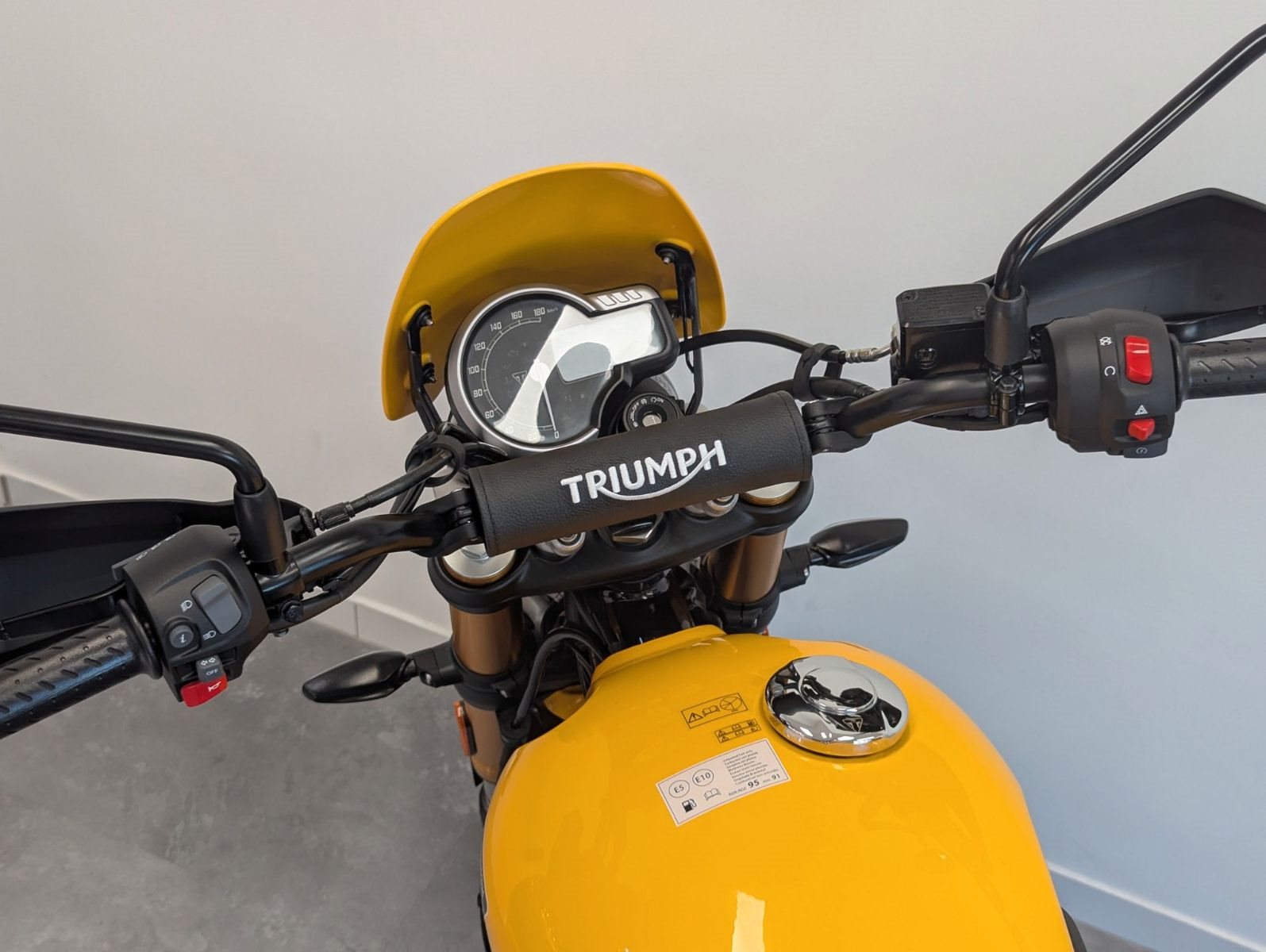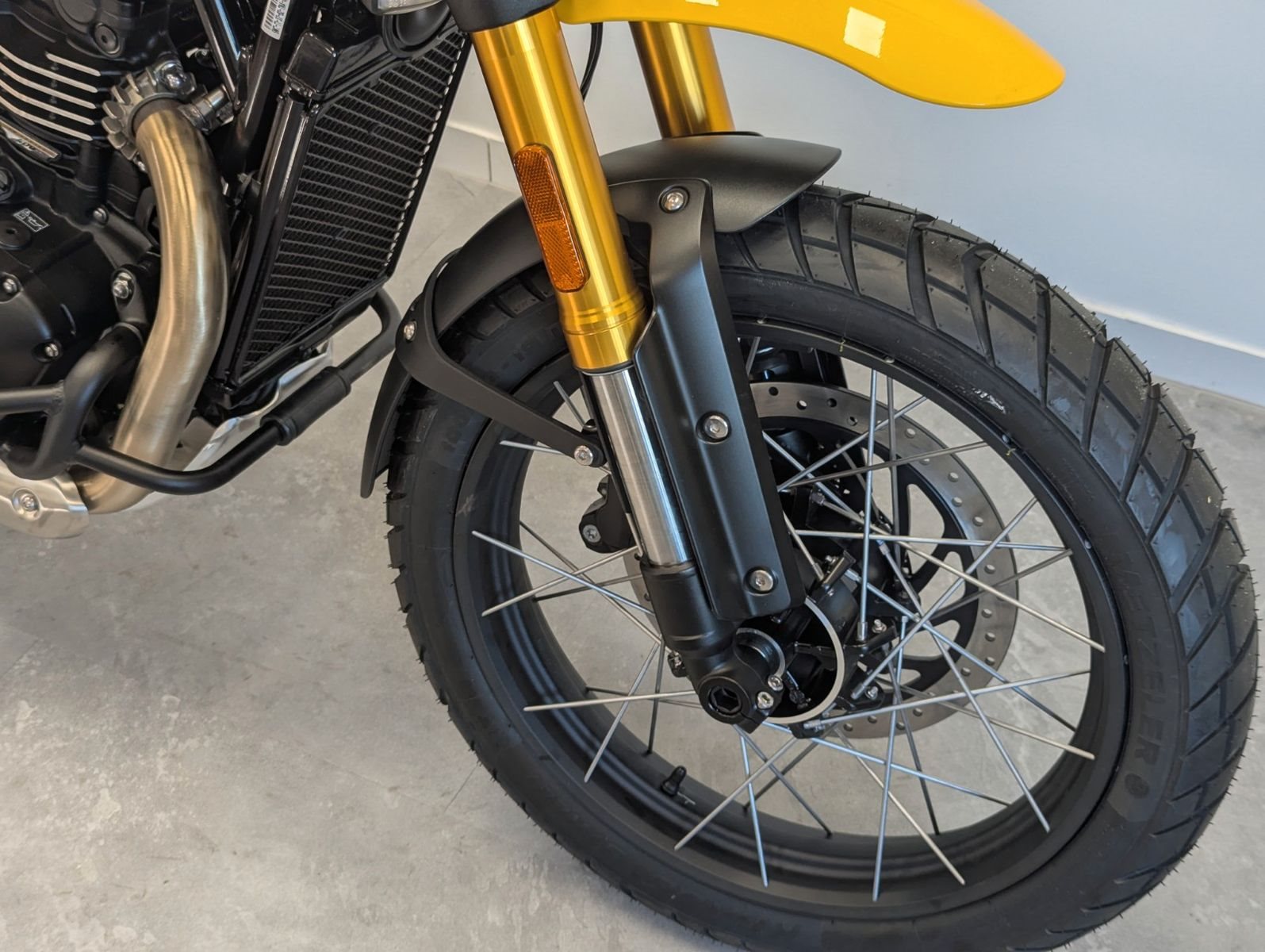 . Robuste Scrambler-Geometrie mit breitem Lenker & erhöhter Bodenfreiheit