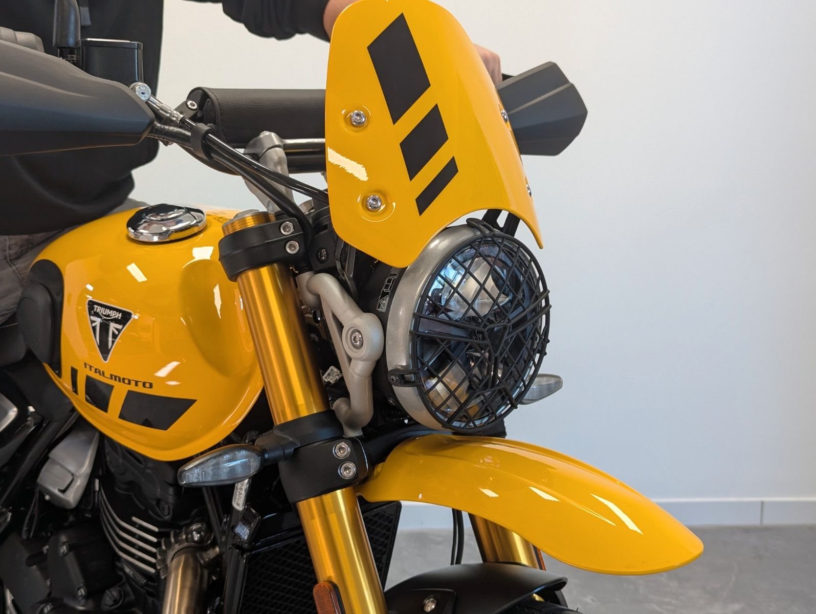 . Scrambler-Details wie hochgezogener Auspuff und Schutz-Elemente