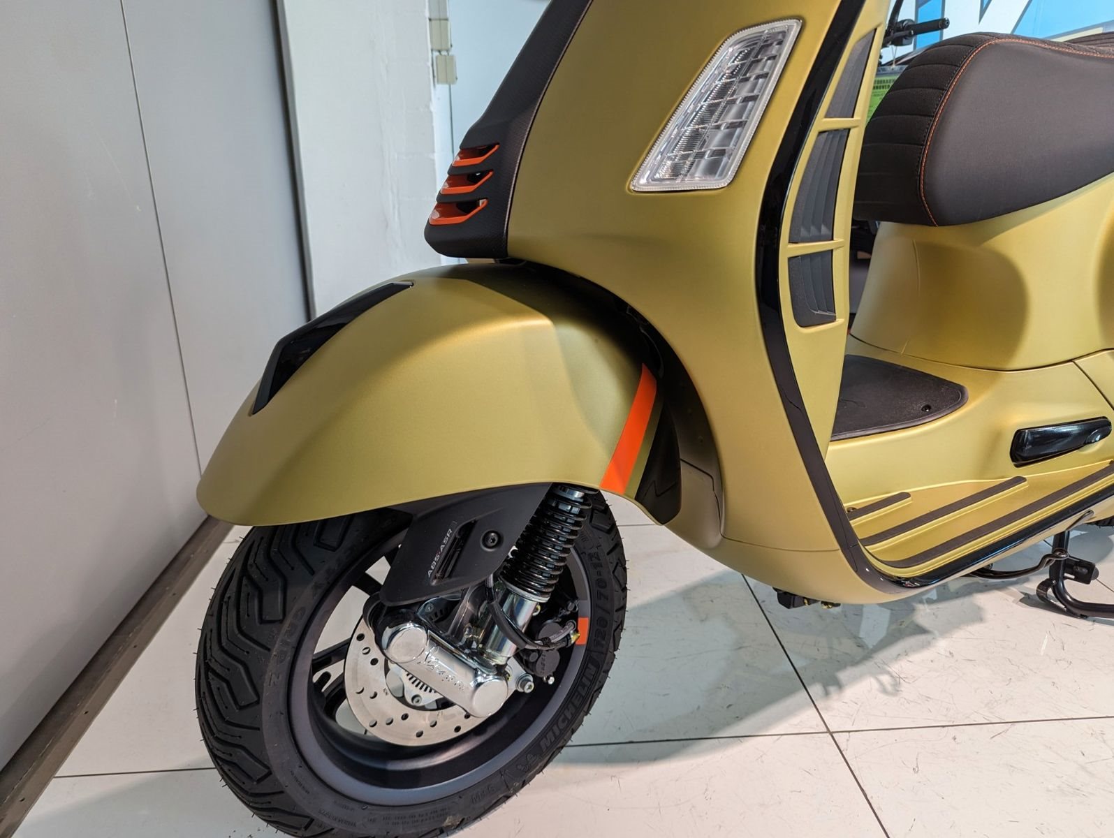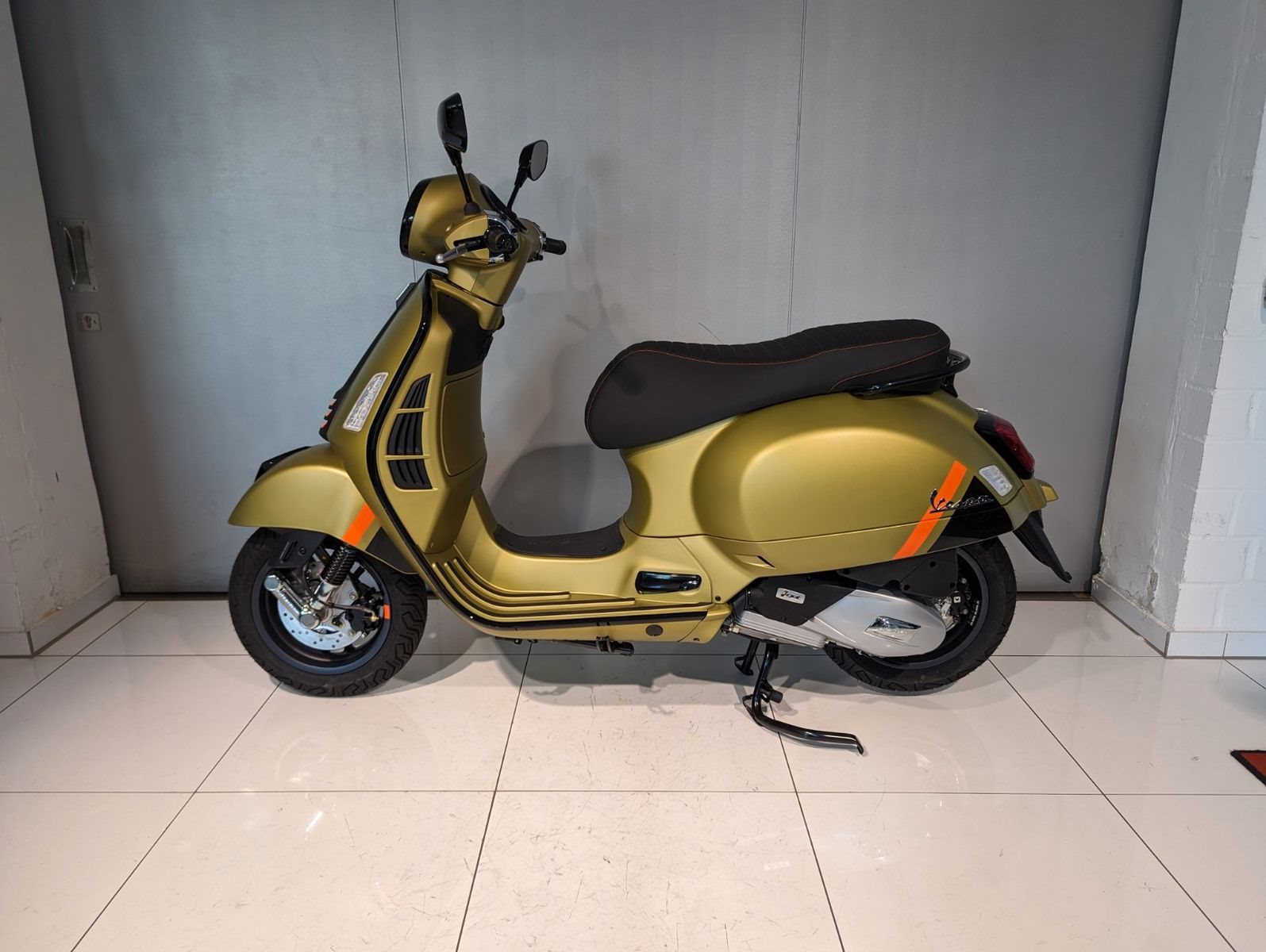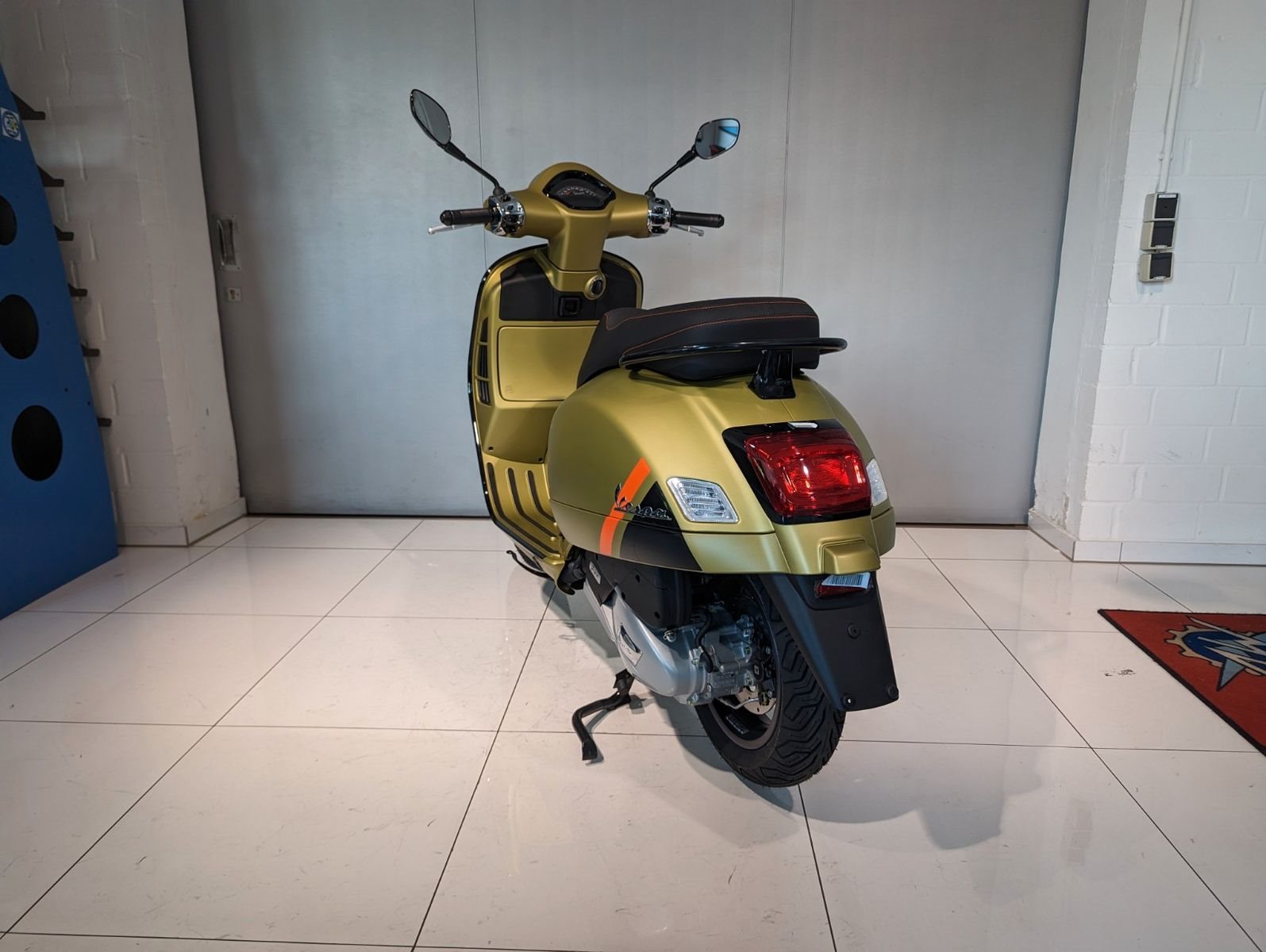 Die Vespa GTS SuperSport ist in einer großzügigen Auswahl an glänzenden und matten Farbschemata erhältlich, mit Einsätzen in Carbon-Optik und glänzenden schwarzen Details, die den perfekten Akzent für die von Ihnen gewählte Lackierung bilden. Die Vespa GTS SuperSport ist mit vielen zusätzlichen Details und sportlichen Grafiken ausgestattet, während der bequeme Sitz mit hochwertigem Material und Kontrastnähten gepolstert ist.