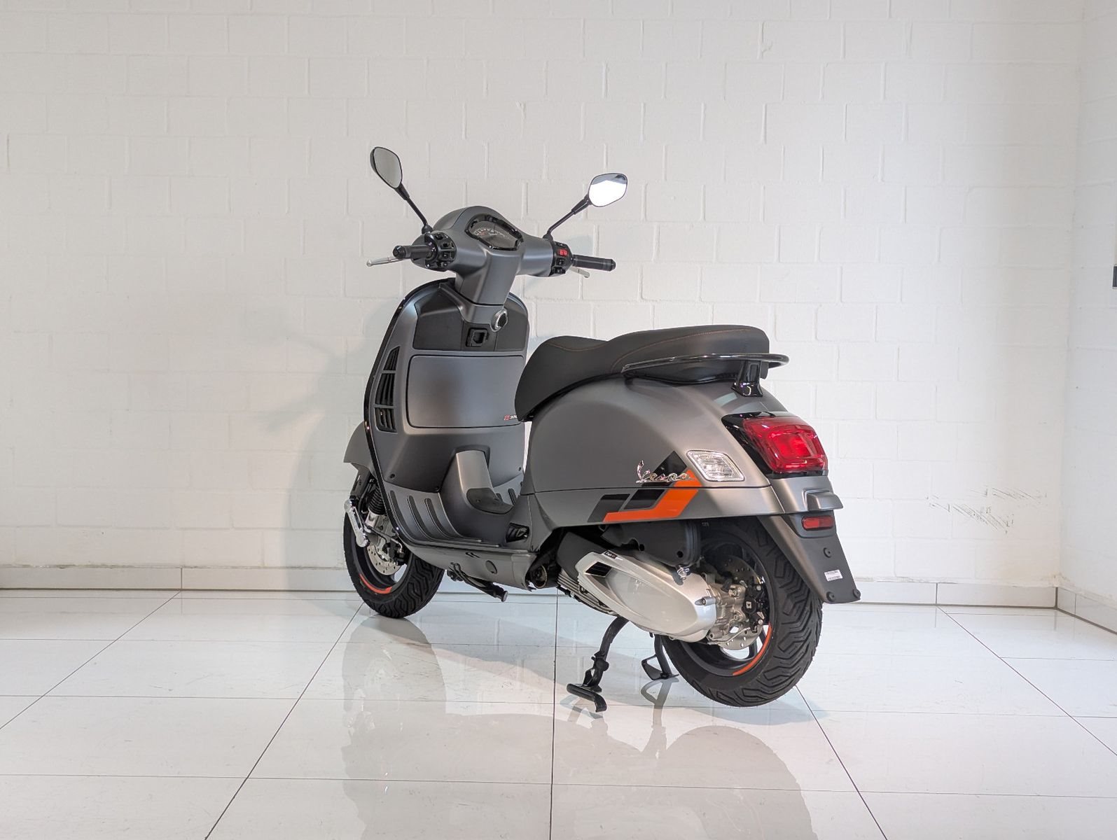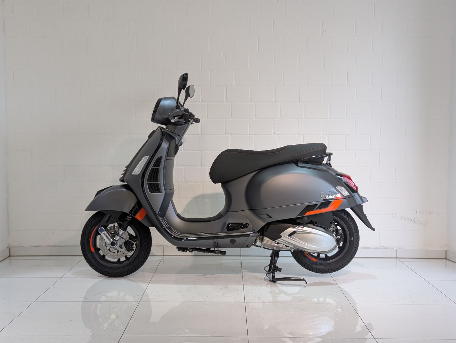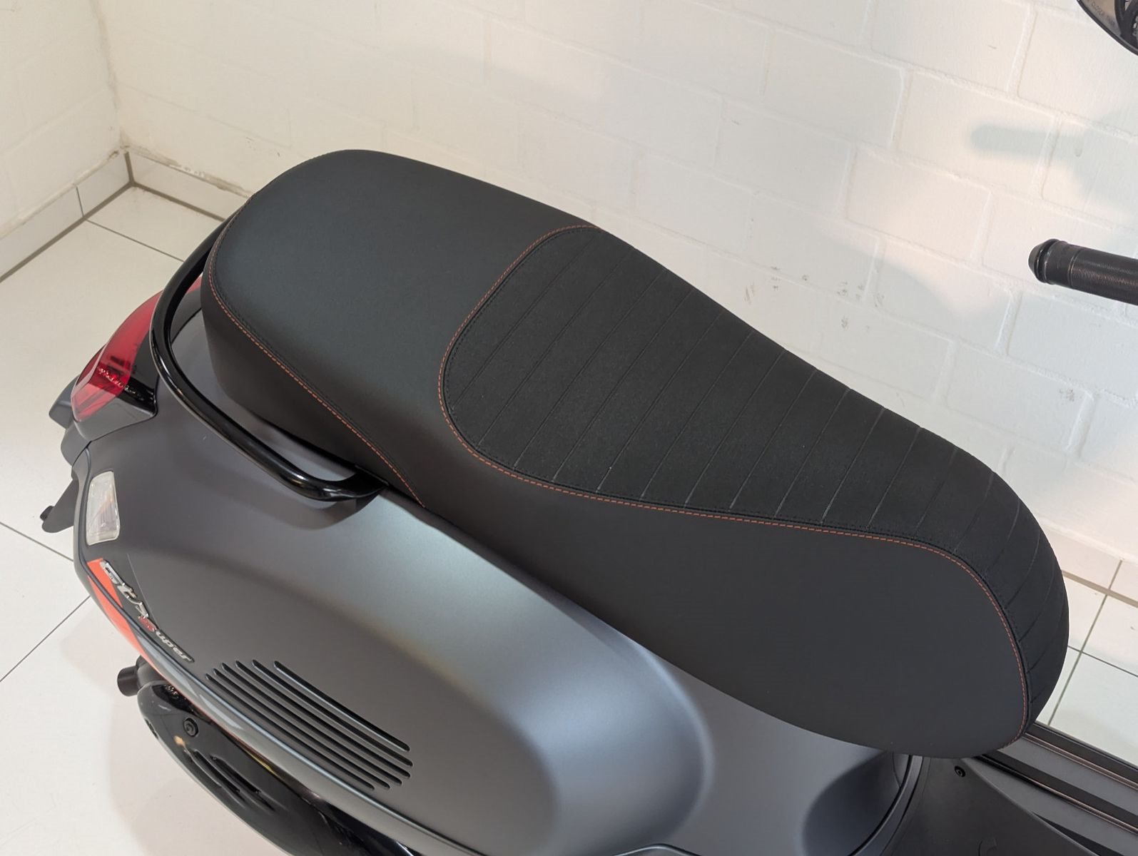 Die Vespa GTS SuperSport ist in einer großzügigen Auswahl an glänzenden und matten Farbschemata erhältlich, mit Einsätzen in Carbon-Optik und glänzenden schwarzen Details, die den perfekten Akzent für die von Ihnen gewählte Lackierung bilden. Die Vespa GTS SuperSport ist mit vielen zusätzlichen Details und sportlichen Grafiken ausgestattet, während der bequeme Sitz mit hochwertigem Material und Kontrastnähten gepolstert ist.